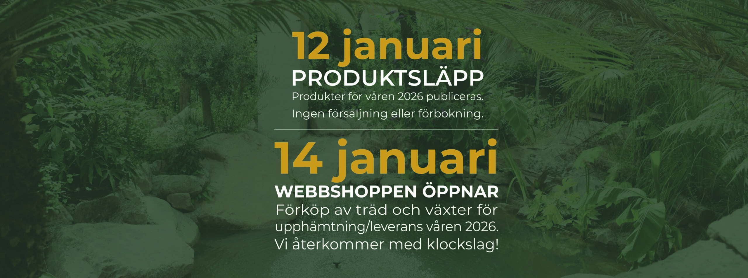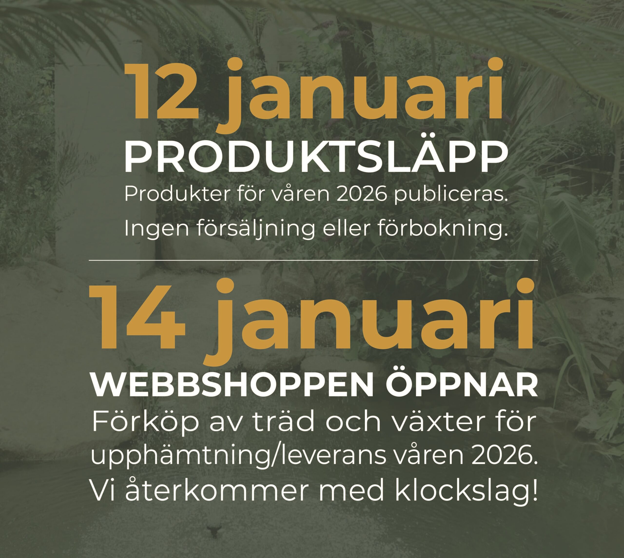 15 minuters bilfärd från trädgården, i Osby på Svetsvägen 6, har vi får huvudsakliga växtförsäljning av både vanliga och ovanliga fruktträd från både tempererade, subtropiska och tropiska delar av världen. Under hela odlingssäsongen vill vi erbjuda våra kunder en mängd olika fruktträd, prydnadsträd och bärbuskar som trivs på våra breddgrader.