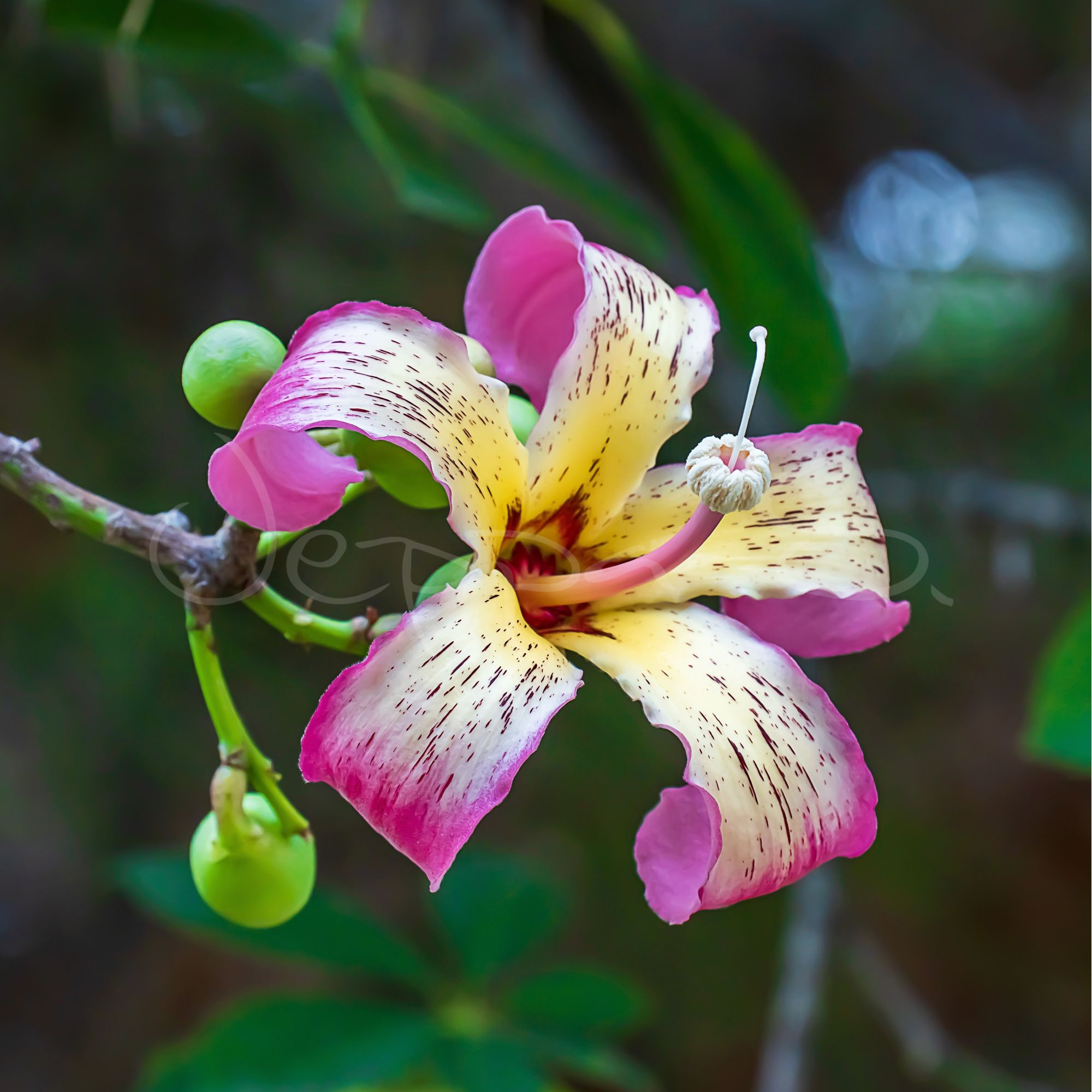 Chorisia Speciosa är ett lövfällande träd och känns igen på sin gröna stam som ofta är täckt av kraftiga taggar. Under blomningsperioden får det stora, rosa blommor med ljus mitt, vilket gör det till ett populärt prydnadsträd i parker och trädgårdar i varma klimat. Frukterna innehåller en mjuk, bomullsliknande fiber som kallas silk floss och som ibland används som fyllnadsmaterial.